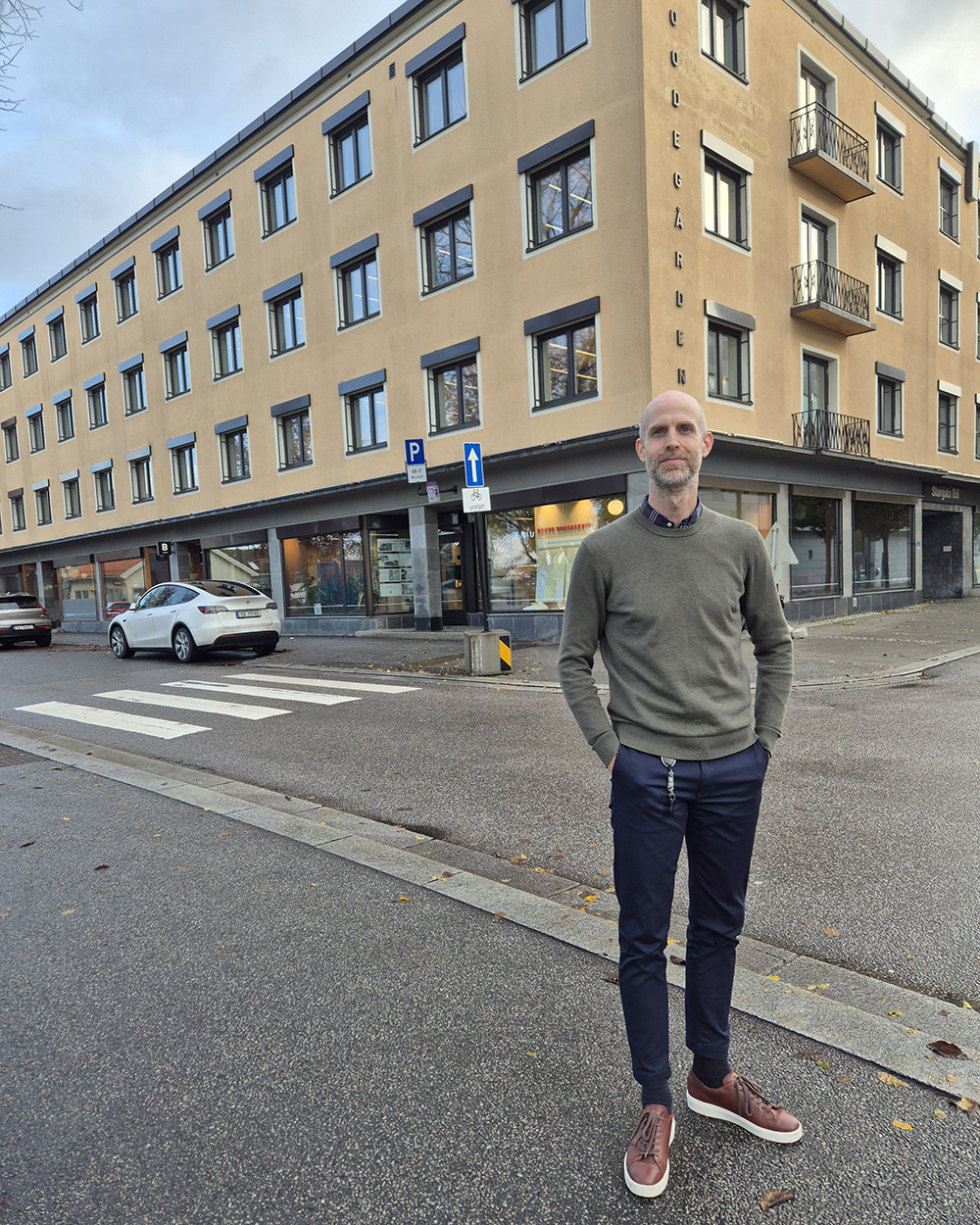 – Nå er vi 28 ansatte med kun 10 parkeringsplasser i Floodegården i Storgata, sier han.