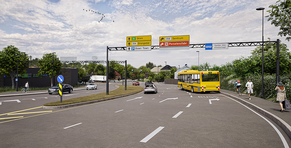 – Vi skal bygge om krysset og lede gjennomgangstrafikken som kommer nordover vekk fra sentrum. Videre skal vi prioritere bussen inn til sentrum, og bygger et eget kollektivfelt, sier Lisbeth Lehn Fosse, prosjektleder ved Seksjon vegutbygging i Telemark fylkeskommune og prosjektleder for Fv. 356 Raschebakken og Skippergata.